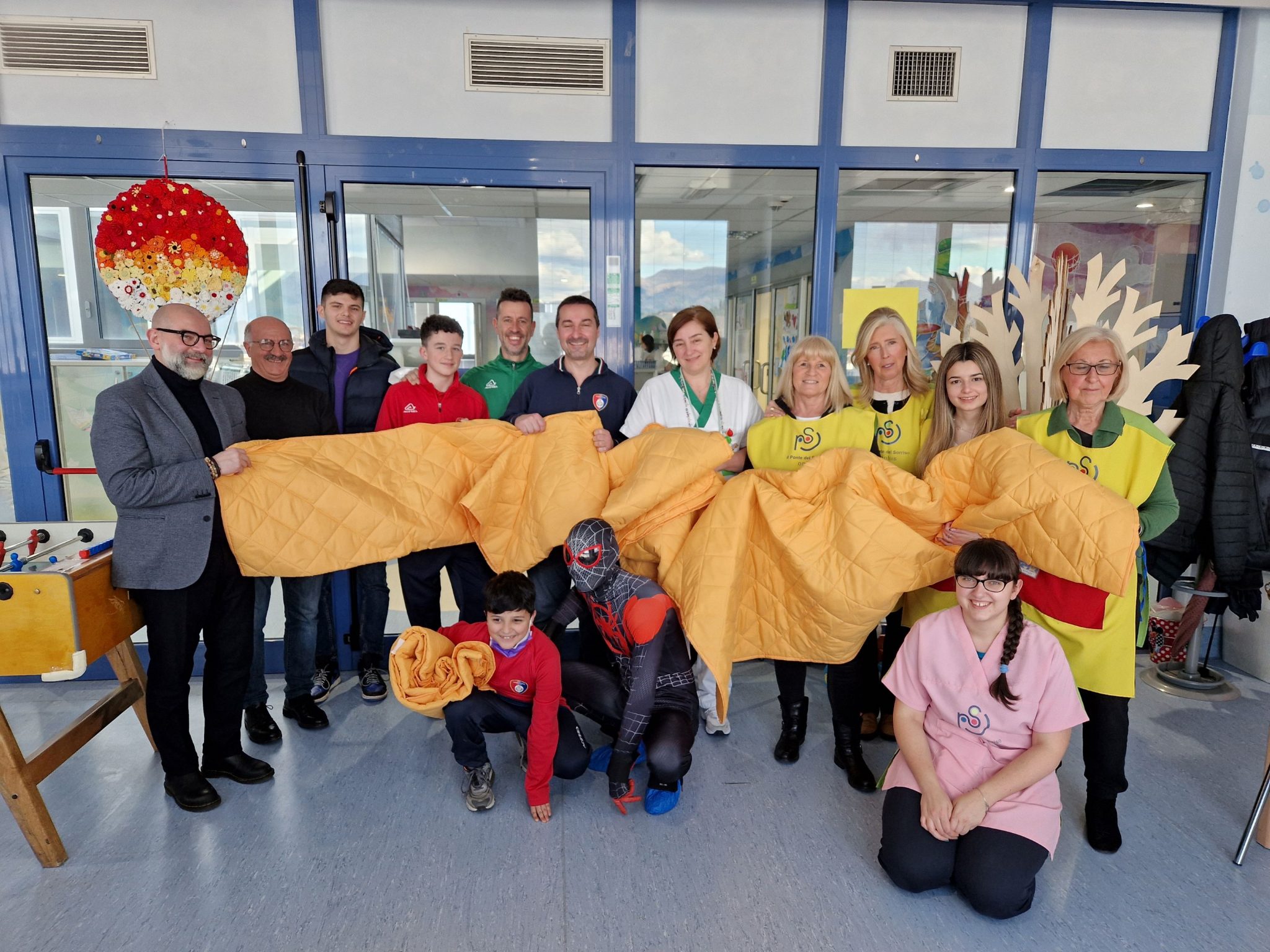 Per l’Epifania ben 32 società di calcio giovanile di tutta la Provincia di Varese, con 347 bambini, hanno partecipato al Trofeo della Befana organizzato dal direttivo della Ternatese Calcio, un’eccellenza sportiva non solo sul campo, ma anche per l’esempio educativo che trasmette ai giovani atleti. Giocare, divertirsi ma anche avere un pensiero per i bambini ammalati. Il ricavato della manifestazione, infatti, è stato devoluto a Il Ponte del Sorriso per dotare la Pediatria di Varese di 70 copertine calde, colorate e morbide che rendono più accogliente e allegro il lettino di ospedale, più simile a quello lasciato a casa. Alla cerimonia di consegna avvenuta in sala giochi è intervenuto il Direttore Socio-Sanitario Giuseppe Calicchio che si è poi cimentato in partita a calcetto coi bambini ricoverati e ha voluto ringraziare così “Sport e solidarietà formano una coppia vincente. Lo sport non si limita a spiegare quali sono i valori, ma li insegna mettendoli in pratica. Il calcio infatti rappresenta il fare insieme, il fare squadra”. Il Presidente Giuseppe Bognolo, accompagnato dal direttore sportivo Massimiliano Arosio e dal direttore tecnico Michele Arbore, ha raccontato quanto sia stato emozionante l’evento della Befana “Una bambina ci ha consegnato una busta contenente i suoi risparmi per donarli ai bambini in ospedale. Mi ha toccato il cuore vedere questa spontanea generosità”. Il Vicepresidente Donato Lacerenza, una delle anime del trofeo, non ha potuto intervenire ma era presente con il cuore Un caloroso grazie è arrivato anche dalla caposala, Maria Pia Paganini e naturalmente dai volontari de Il Ponte del Sorriso.