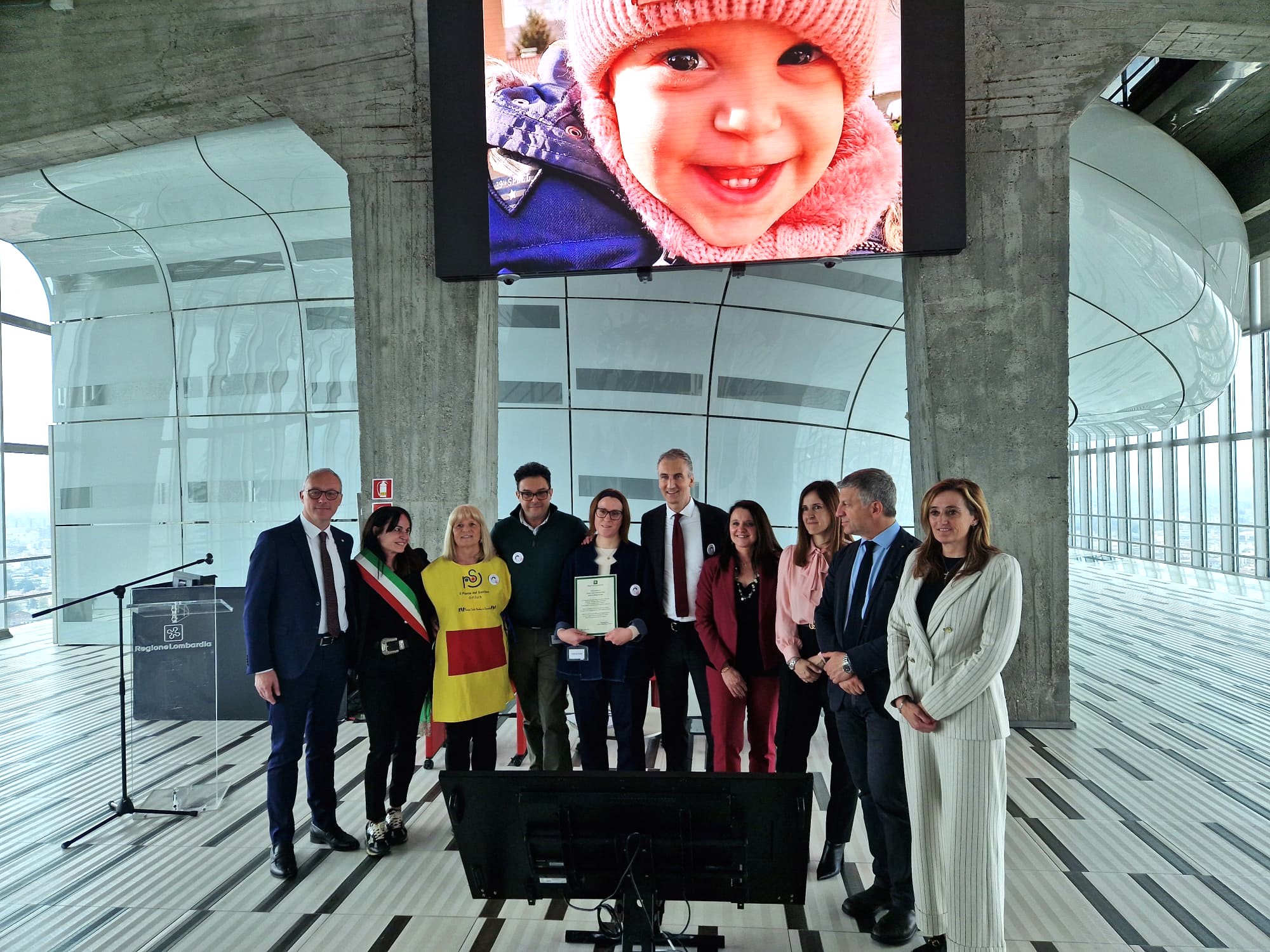 Una pergamena ai genitori di Margherita Rosa da Regione Lombardia, dall’Assessore Alessandro Fermi, per dire loro grazie per aver trasformato un grande dolore in speranza per tanti bambini in ospedale.