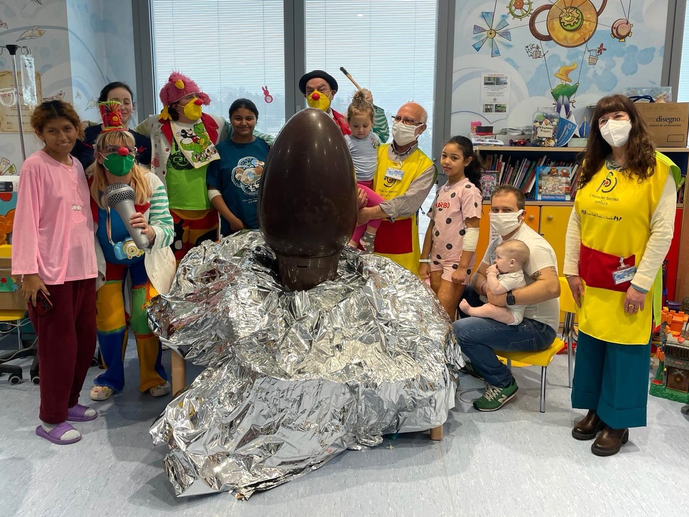 Per fortuna ci hanno pensato i nostri meravigliosi volontari che, anche il giorno di Pasqua erano presenti in reparto per renderla comunque festosa e allegra. Insieme a loro, c’erano i divertenti clown dall’associazione I colori del Sorriso Vip Varese che hanno aiutato i bambini a rompere le uova con tanta simpatia.