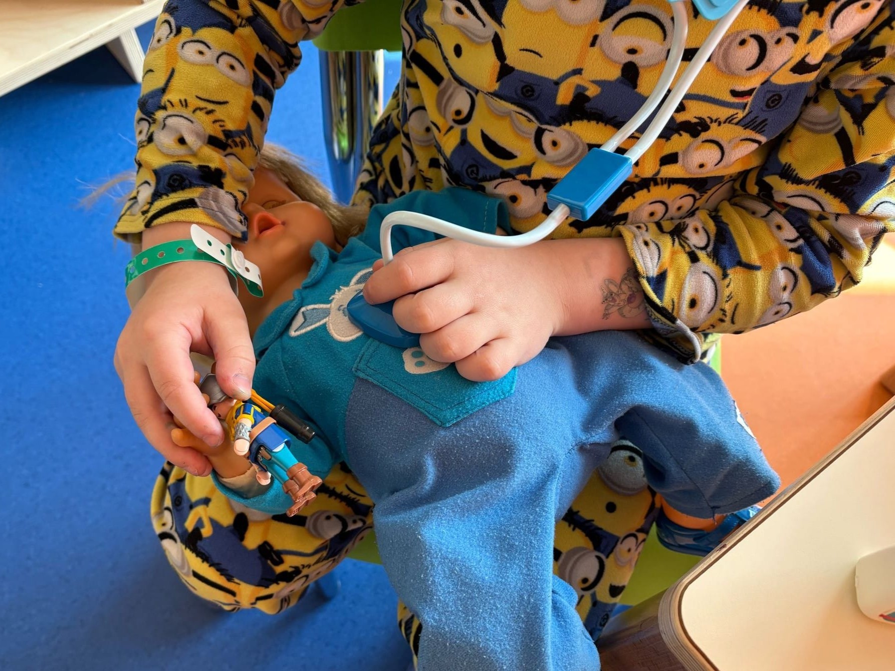 Prontamente la dott.ssa ha preso un piccolo cavaliere coraggioso e l’ha messo in mano a Cicciobello, che si è subito calmato e ha smesso di piangere, lasciandosi visitare senza avere più paura.