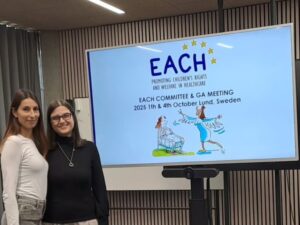 Dal 1° al 4 ottobre, a Lund, in Svezia abbiamo partecipato all’Assemblea Generale di EACH (European Association for Children in Hospital and Healthcare), l’Associazione Europea per i Bambini in Ospedale, che riunisce associazioni nazionali impegnate nel benessere dei bambini ammalati, di cui noi facciamo parte.