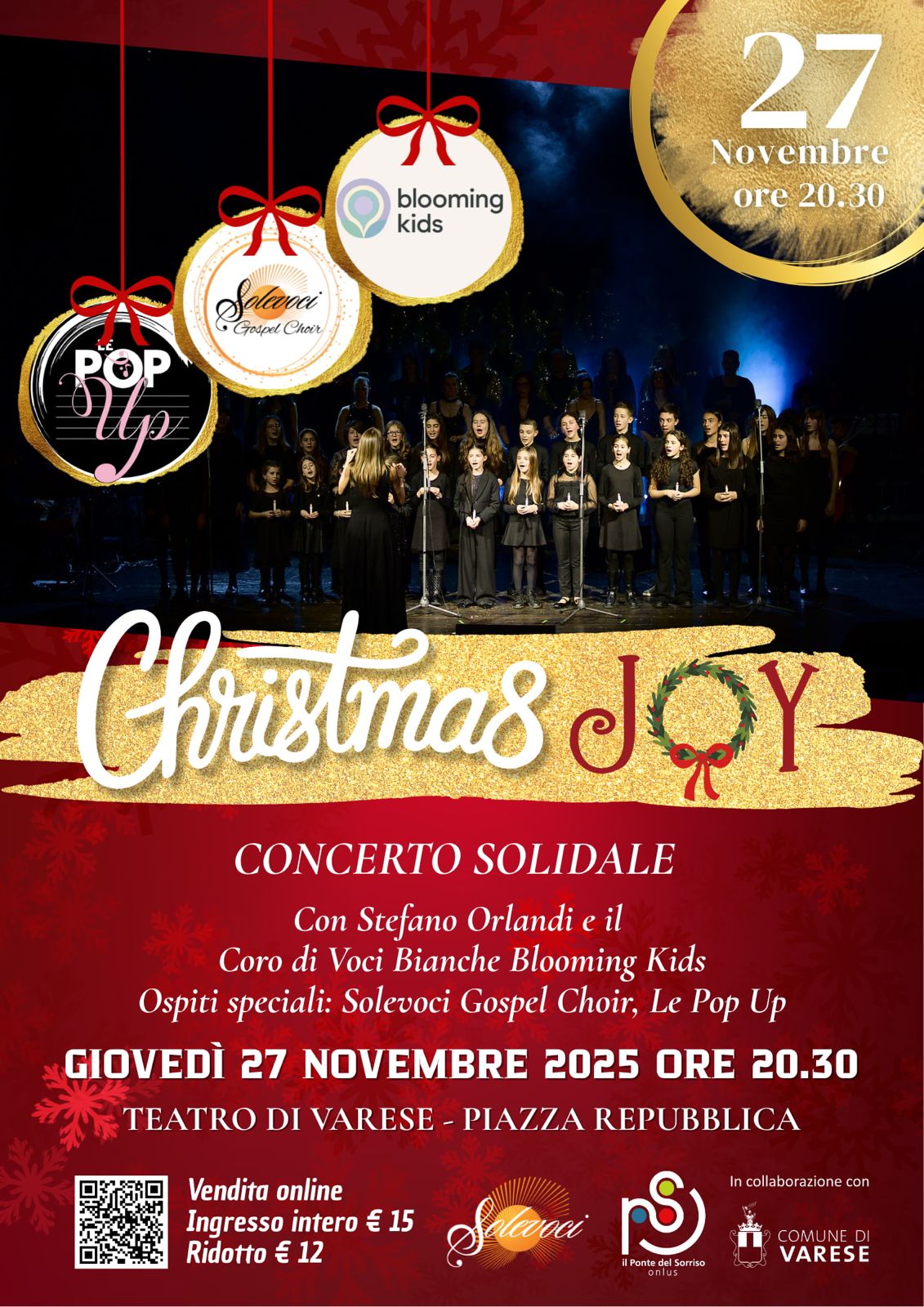 Torna Christmas Joy! Lo spettacolo che porta sul palco l’energia, l’emozione e la magia del Natale attraverso musica e solidarietà, che si terrà giovedì 27 novembre alle ore 20.30 al Teatro di Varese.