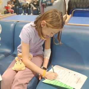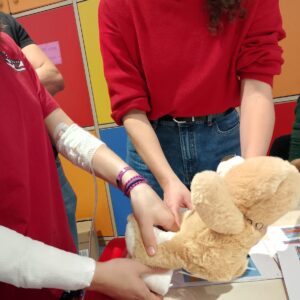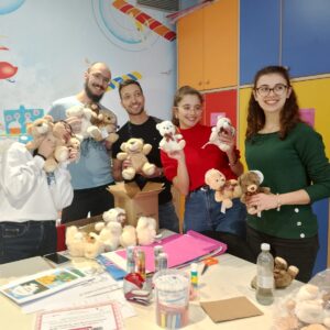 Zoe e Ilary hanno dato spazio alla creatività preparando i peluche da curare in base alla diagnosi. Gli orsacchiotti sono poi stati portati in Pronto Soccorso dove i bambini presenti hanno accolto con grande entusiasmo l’arrivo di questi “nuovi pazienti” e hanno curato gli orsetti da febbre e mal di pancia con vaccini e tanta fantasia!