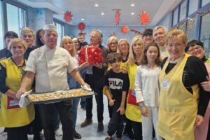 Il pomeriggio è stato arricchito da un momento particolarmente tenero: un piccolo paziente ha realizzato e regalato alle fornarine presenti un mazzo di fiori di carta. E per l’occasione è stato anche condiviso un panettone artigianale di “dimensioni normali”, condividendo un momento di dolcezza e serenità.