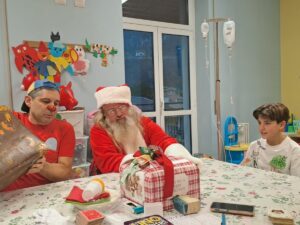 Oh-Oh-Oh, tintinnio di campanelli, melodie natalizie, profumo di cannella, elfi che corrono per le corsie hanno creato un’atmosfera natalizia così intensa che tutti i bambini e i genitori si sono affacciati dalle porte delle loro stanze increduli e curiosi per vedere che cosa stesse succedendo.