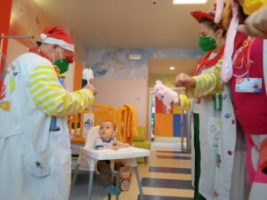 PRESENTI ANCHE IL GIORNO DI NATALE. Potevamo lasciare i bambini ricoverati e i ragazzi della Neuropsichiatria Infantile senza atmosfera natalizia proprio il giorno di Natale? Certo che no!