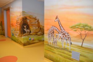 Elena Lisa Colombo e Tiziano Colombo (non sono parenti) sono i due artisti professionisti che abbiamo assunto per realizzare le ambientazioni di alcuni dei nostri reparti pediatrici, cogliendo fin da subito la filosofia del nostro progetto “L’Arte che Cura”, che prevede di trasformare un ambiente asettico, come solitamente è un ospedale, in un luogo che accoglie e non respinge, che contiene le ansie e non le amplifica.