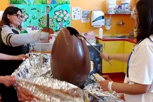 In ogni Pediatria della Provincia di Varese bambini e adolescenti hanno sgranato gli occhi increduli davanti a uova di cinque e persino di otto chilogrammi, così grandi che i bambini facevano a gara per misurare chi era più alto dell’uovo. Uova di cioccolato giganti che hanno rotto tutti insieme, a Busto firmato Aurora Pro Patria 1919, a Cittiglio donato dall’Associazione Nazionale Carabinieri di Luino, a Varese ben due uova giganti, per la Pediatria e per la Neuropsichiatria Infantile, consegnate da papà Antonio e nonno Giovanni
