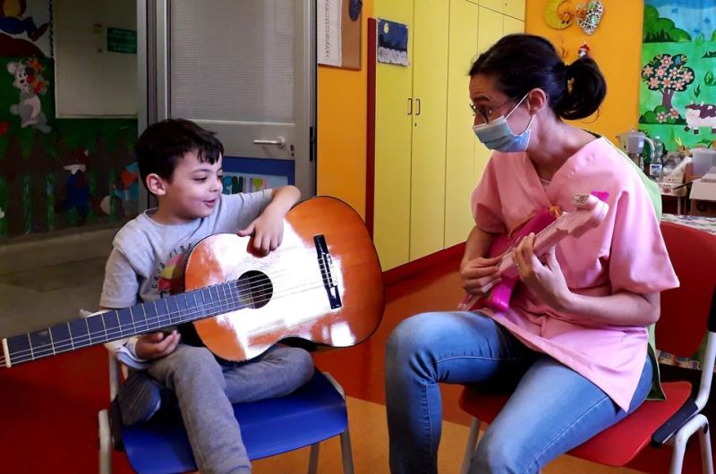 Ma possiamo comunque suonare tanti strumenti per far nascere nei bambini un sorriso: carta,forbici, colori, giochi, storie e misica.