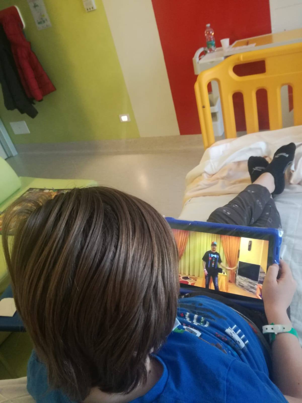 Abbiamo organizzato una rete con i tablets nelle camere dei bambini che consente di realizzare tante belle iniziative. Grazie di cuore ad Antonino Galici, in arte Salamino, e alla sua assistente Beatrice per aver girato un bellissimo spettacolo che i bambini ricoverati stanno guardando con entusiasmo più volte!