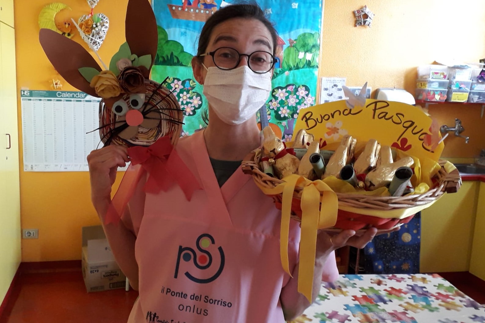 [vc_row][vc_column width=”1/6″][vc_column_text][/vc_column_text][/vc_column][vc_column width=”2/3″][vc_column_text]Per i bambini ricoverati è stata una Pasqua serena, nonostante il COVID. Abbiamo infatti organizzato tante belle attività per non far mancare ai bambini la tradizione che la Pasqua porta con sé. Con i laboratori creativi hanno potuto realizzare uova multicolore per addobbare il reparto, giochi con carta e cartoncino, e persino oggetti in ceramica, creati grazie alla Fondazione Thun che ogni settimana insegna ai bambini a modellare l’argilla. Una grande caccia alle uova ha coinvolto i volontari della Neuropsichiatria Infantile, alla quale i ragazzi ricoverati hanno partecipato con grande entusiasmo. A ogni uovo era stato abbinato il nome di un volontario, collegato da casa, che, una volta individuato dai ragazzi, forniva loro un indizio alla ricerca delle uova in reparto. La mattina di Pasqua, per la gioia di grandi e piccini, sono state distribuite uova di cioccolato, regalate da una sensibile ragazza e da Anffas Luino, coniglietti, peluche con copertine di pile, due strudel giganti donati dalla Stube del Trentino. Nonna Heidi ha poi voluto regalare un uovo gigante che aveva vinto a tutti i bimbi in reparto. Grazie alle consulenti della Casa Editrice Usborne Publishing, sono arrivati 200 libri illustrati per bambini. Ma la solidarietà non si è fermata qui. Ogni bambino, genitore e anche il personale sanitario ha ricevuto bellissime colombe di pasta sfoglia della Pasticceria Del Duca Sangiano, la stessa che ha prodotto le classiche colombe da 1 kg. Che papà Francesco ha voluto vendere per raccogliere fondi per Il Ponte del Sorriso nel ricordo della giovane figlia Martina, volata in cielo qualche anno fa. Ne sono state vendute circa 450, un grande successo per non dimenticare il sorriso di Martina.