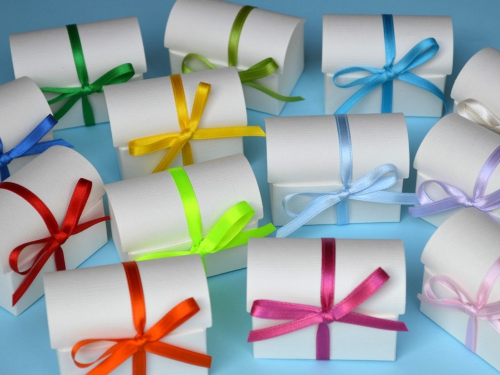 Sono impreziosite da nastrini di raso, che è possibile scegliere in una vasta gamma di colori.