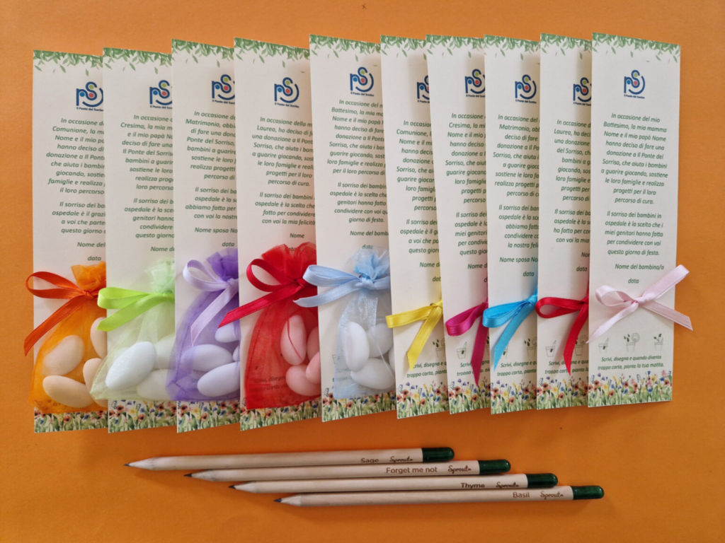 Info e ordini: bomboniere@ilpontedelsorriso.com oppure 0332 286946